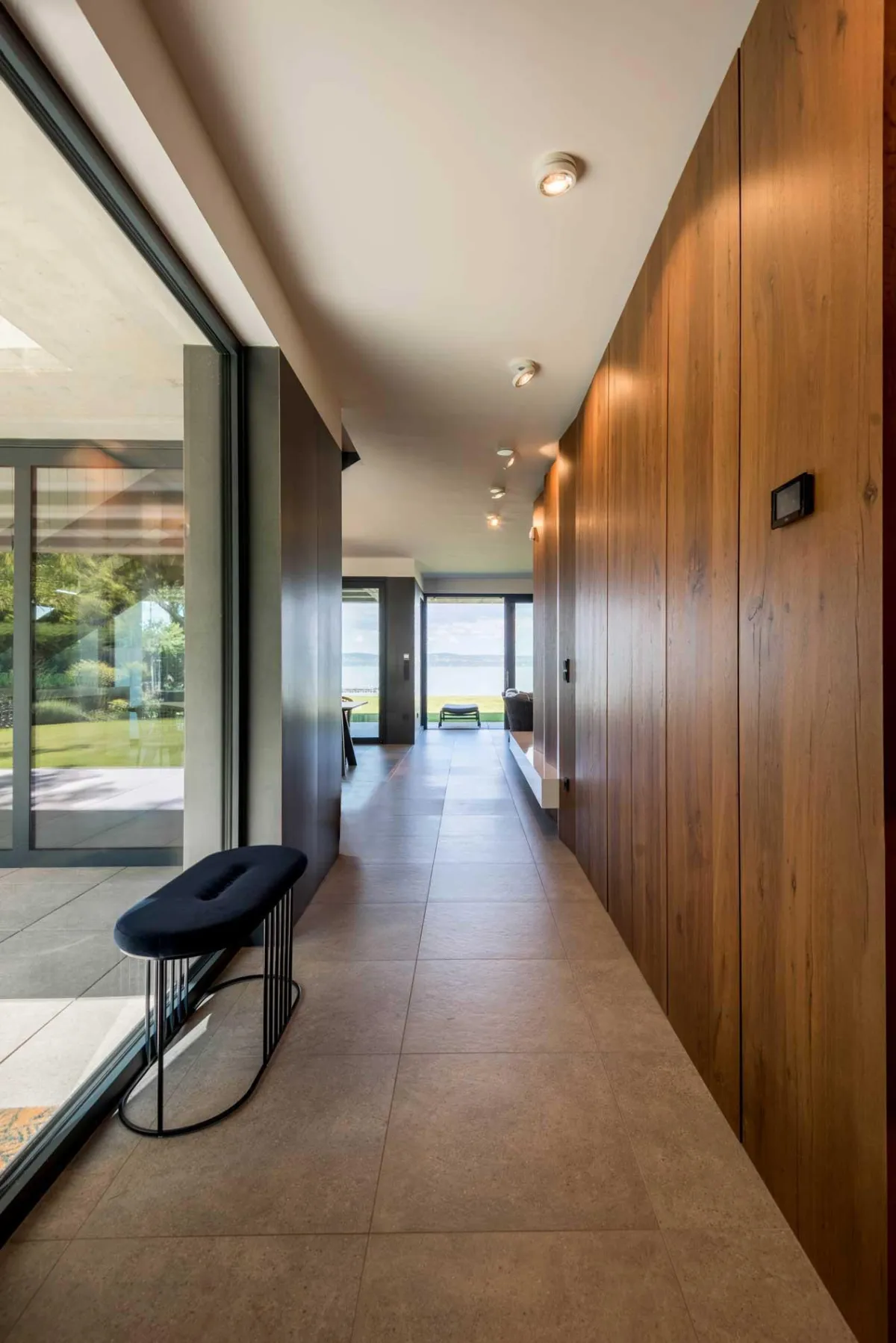 A vízszintesen hullámzó horizont peremét keményen megtörő konstruktív villaépület egy rendkívüli adottságú ingatlan kelléke. Kellék, mert a lényeg itt a Balaton. Minden más a tónak van alárendelve. A part, a kert, az épület mind a Balatoné.